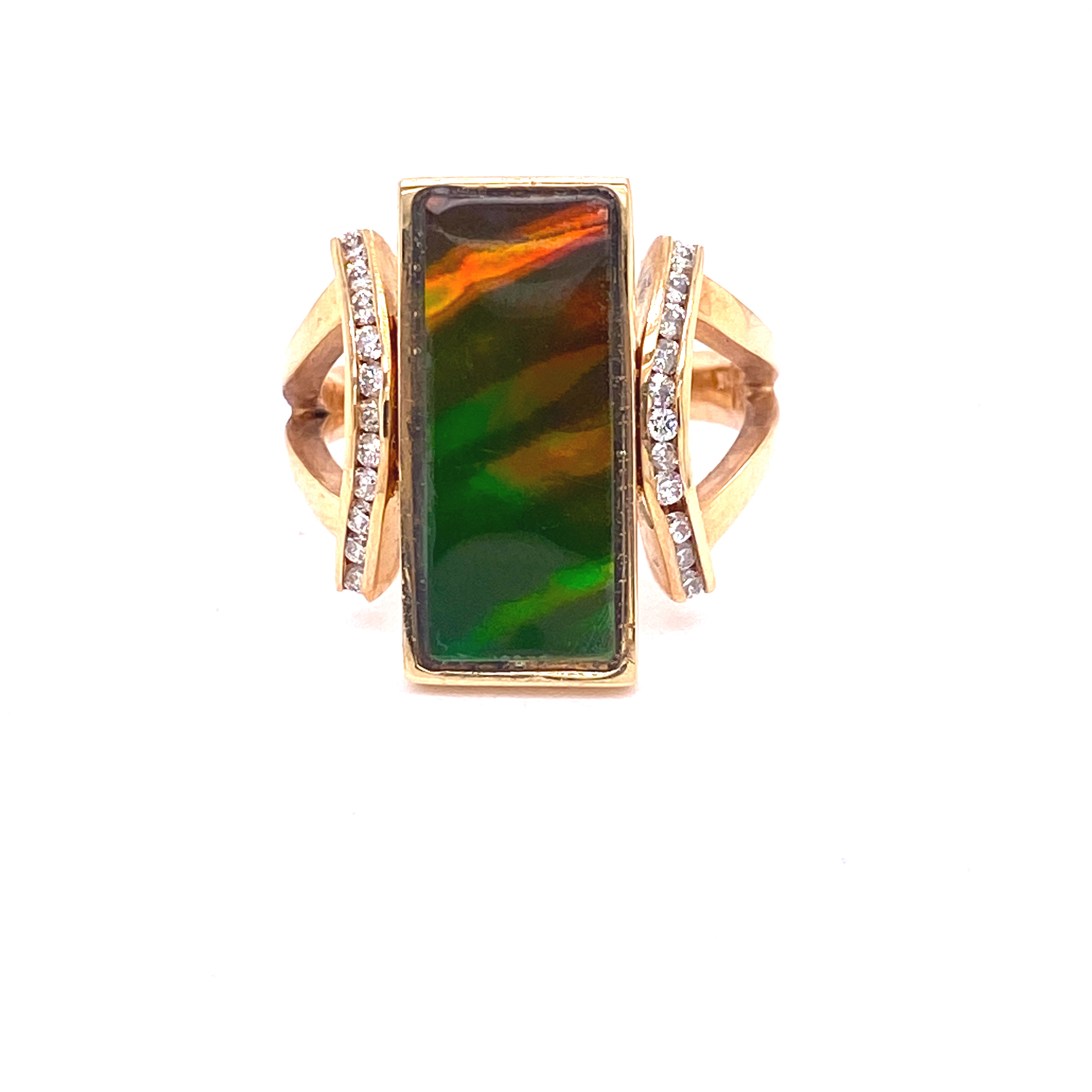 Ladies Yellow Gold Ammolite Ring